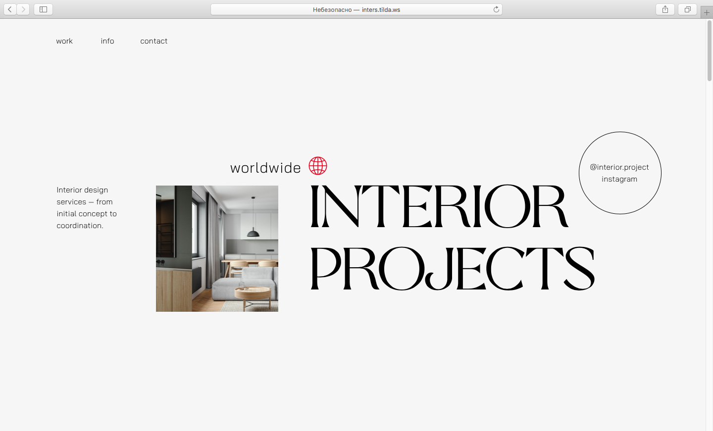 Концепт лендинга для студии интерьерного дизайна.